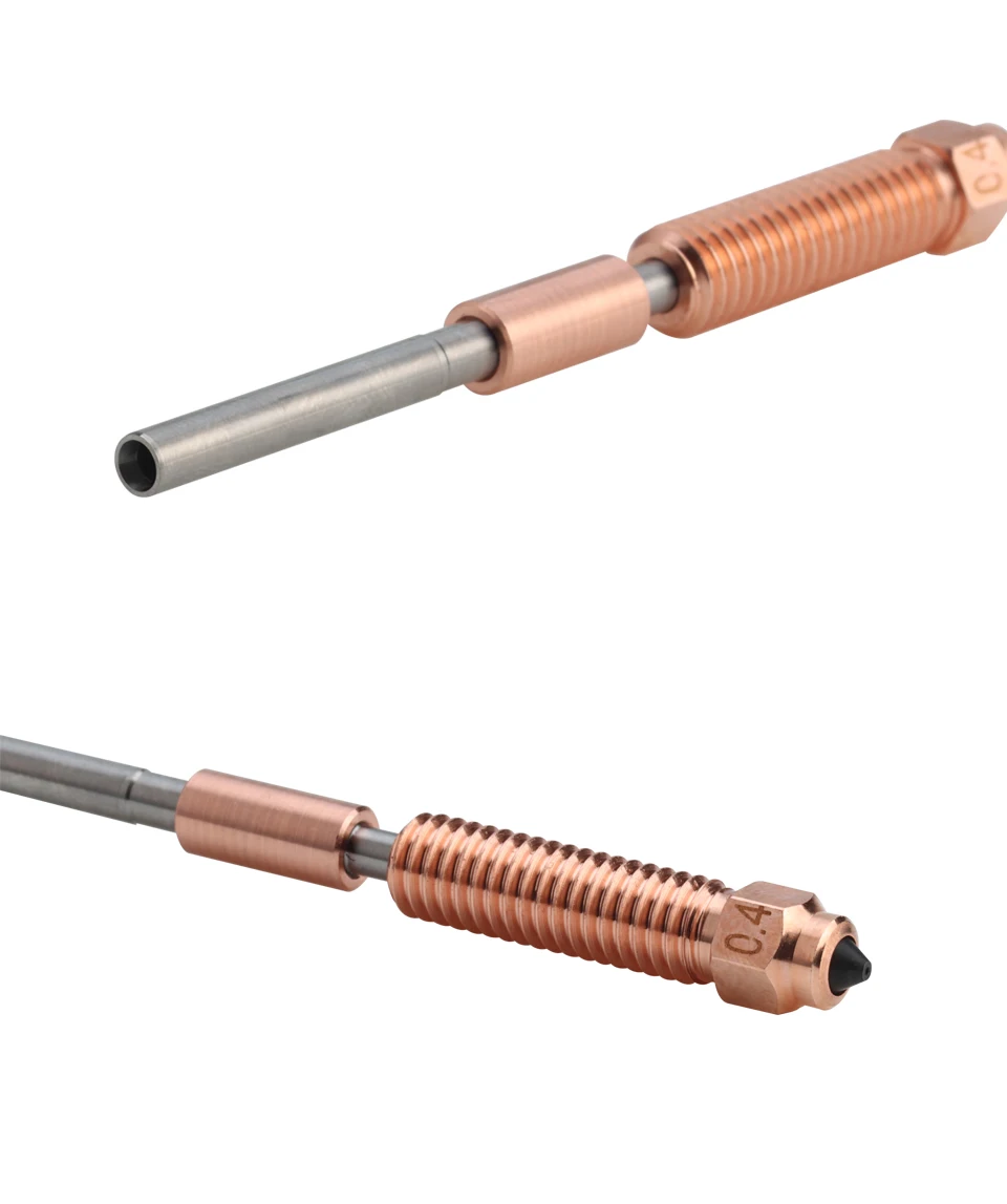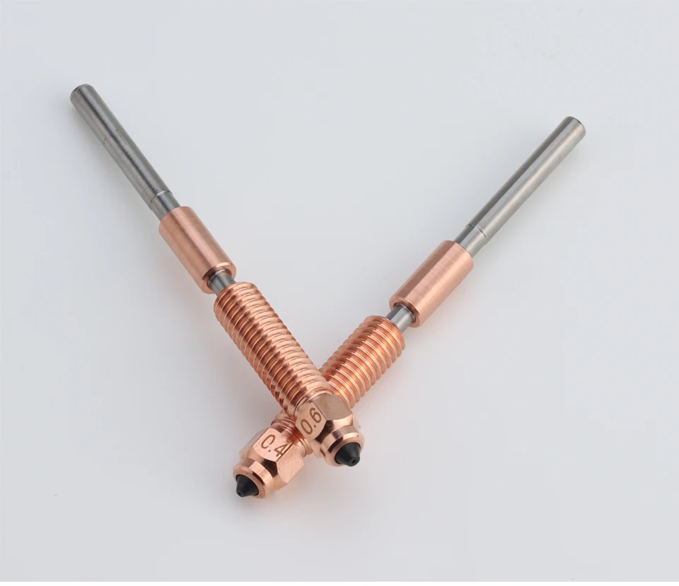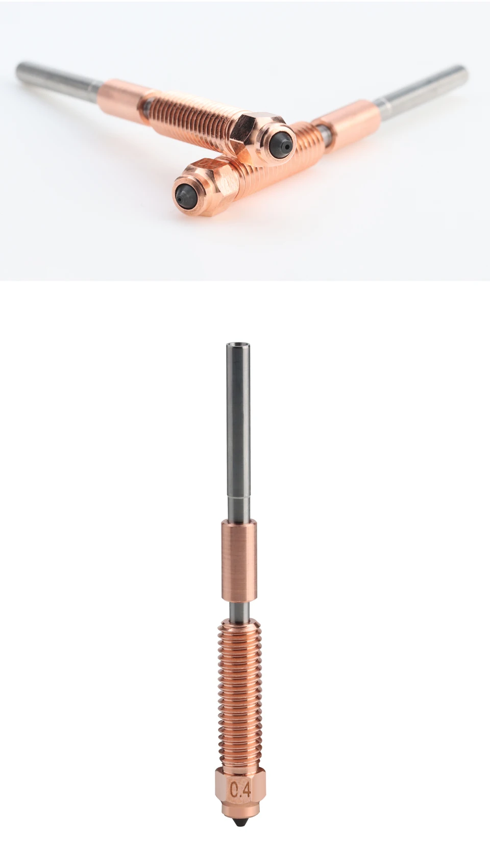 The heat break is made of titanium alloy, which reduces heat conduction.The nozzle is composed of copper alloy and hardened steel, supporting the printing of various filaments.