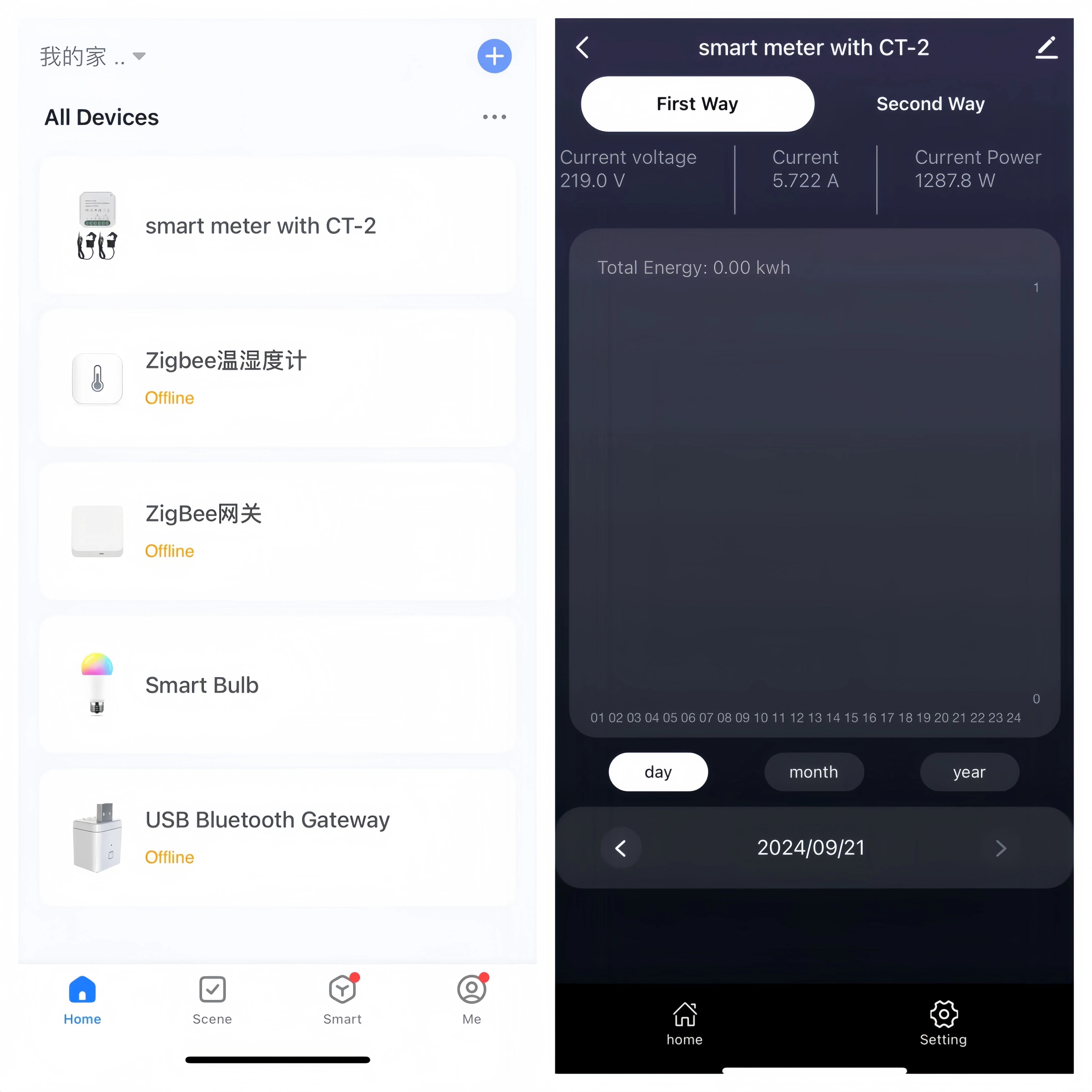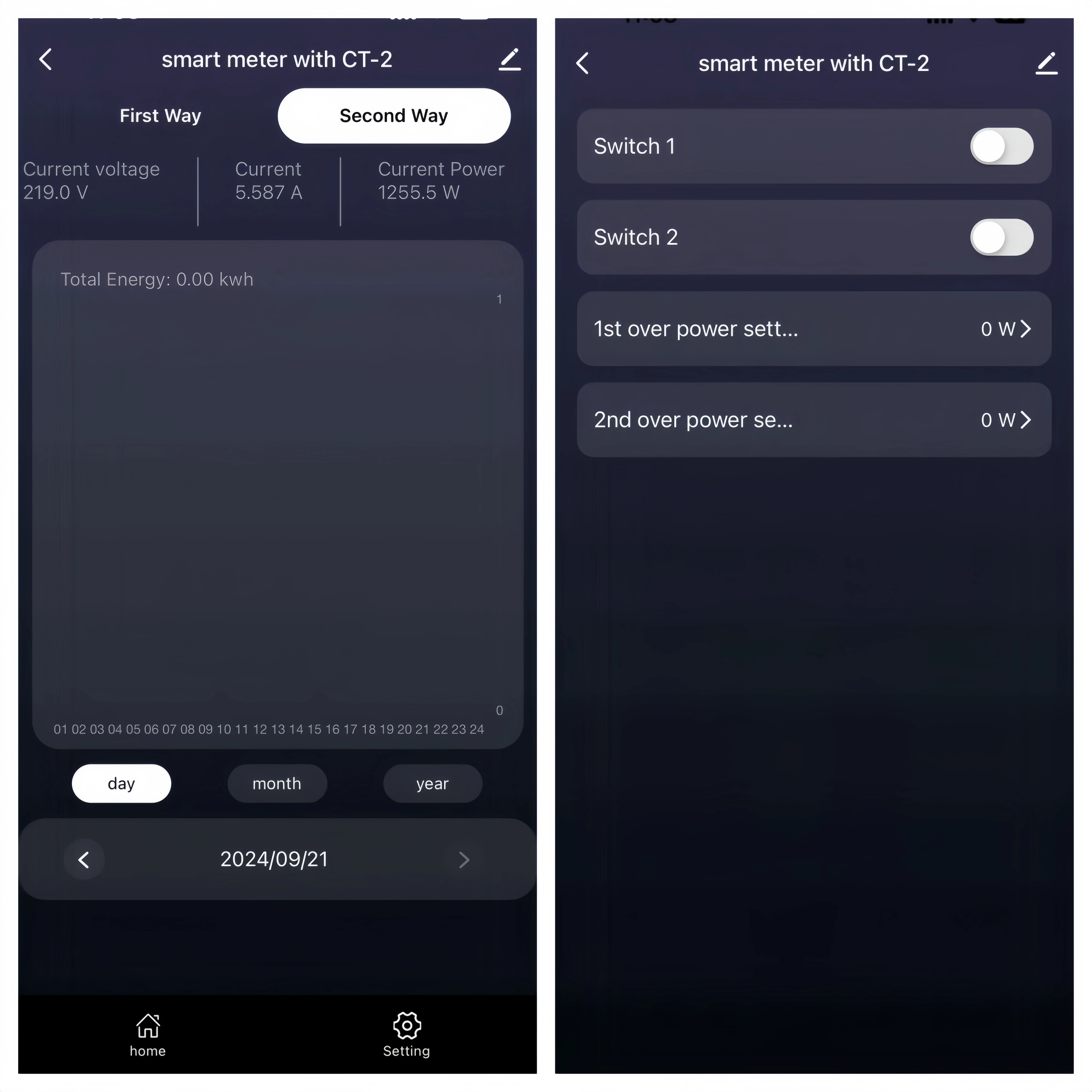 Mobilephone APP Control: The app displays real-time power, current, voltage, power factor and frequency of channel for forward and reverse.