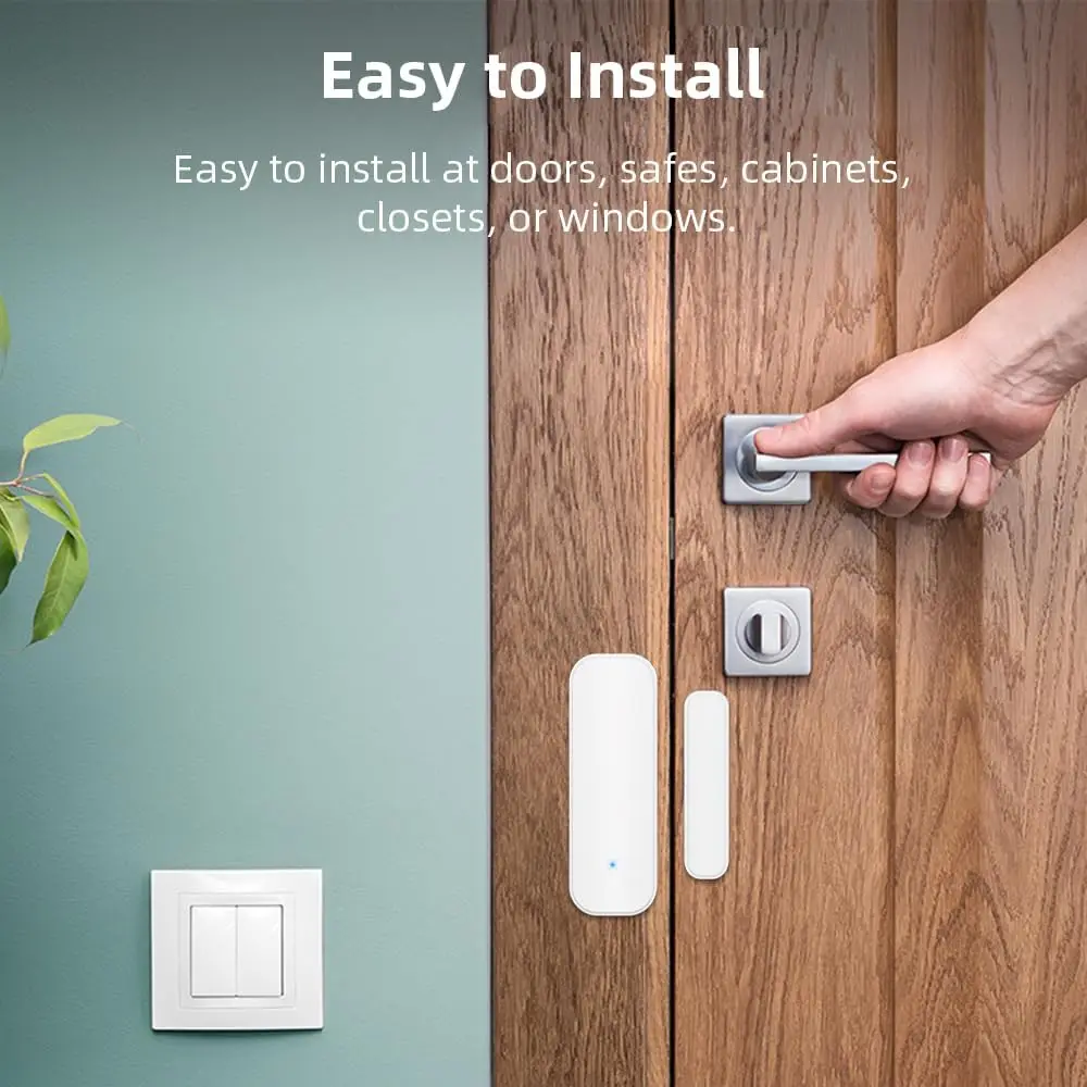 SMART HOME SECURITY SENSOR: 0.78 IN wide gap allowed. Without tools, Easy to install the window sensor with the included 3M sticker, firm and durable. You can install the Alexa door sensor on front doors, garage doors, liquor cabinets, windows, pet doors, and more. The contact sensor is also a good option as a mailbox sensor.