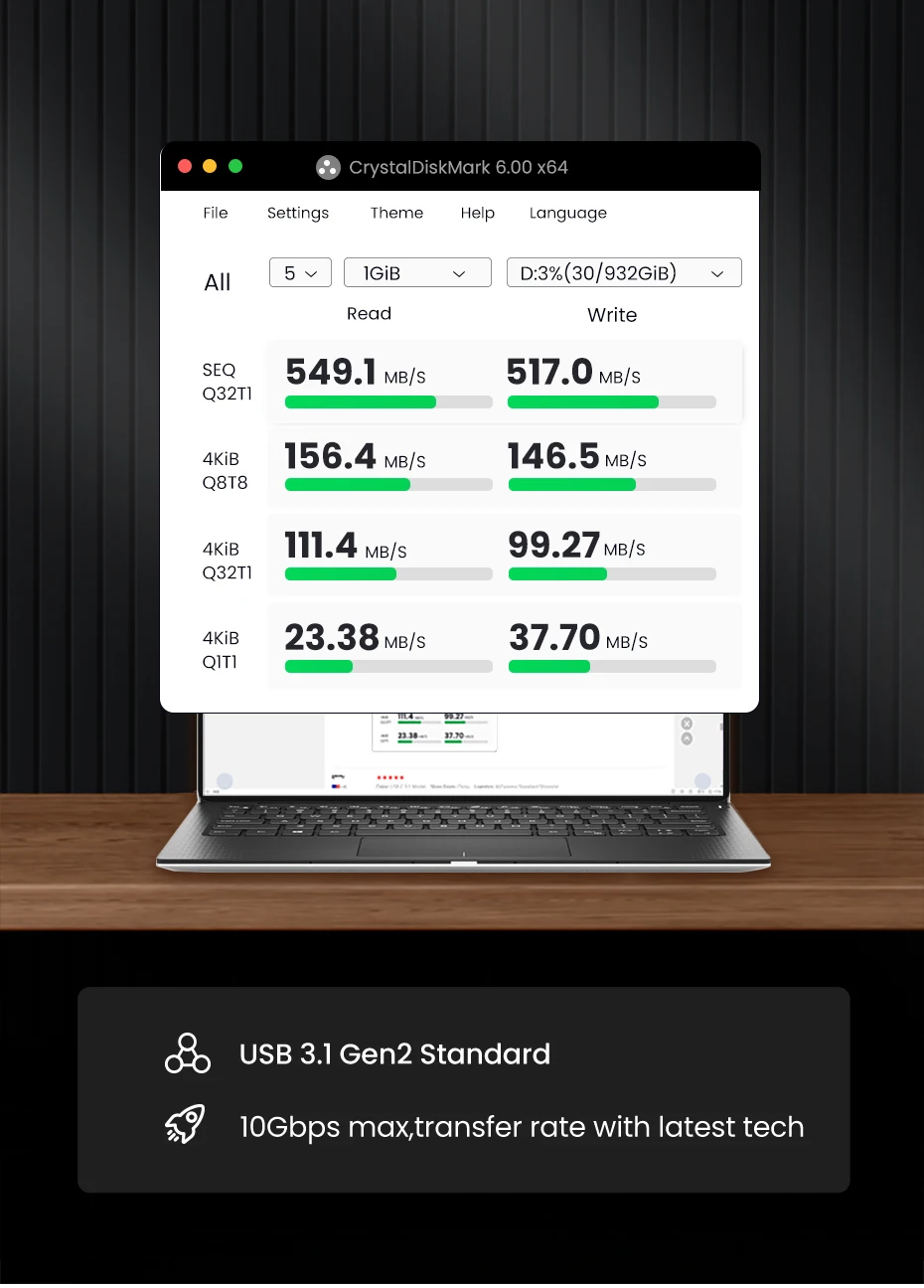 Tested data with usb3.1 gen2 case+Samsung 850EVO SSD