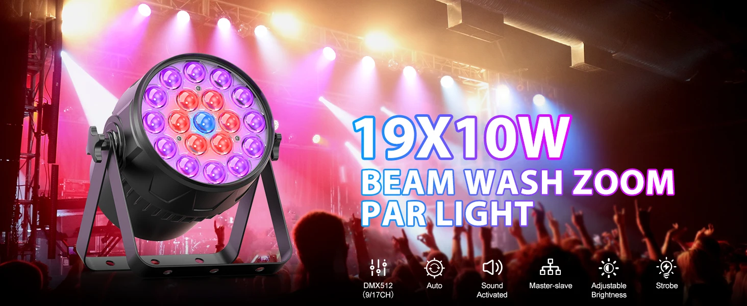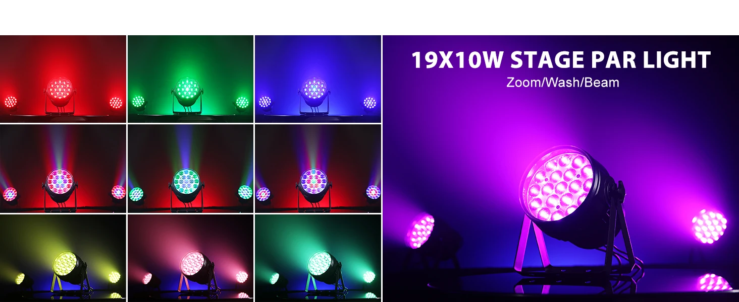 U'King 19x10W RGBW Zoom Par Light DMX512 Control Uplight Coloring Effect Stage Light For DJ Disco Live Show Music Wedding PartySpecifications:Co…