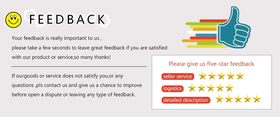 2. Please contact us before leaving any negative or neutral feedback or opening disputes, we will work with you to solve any problems.