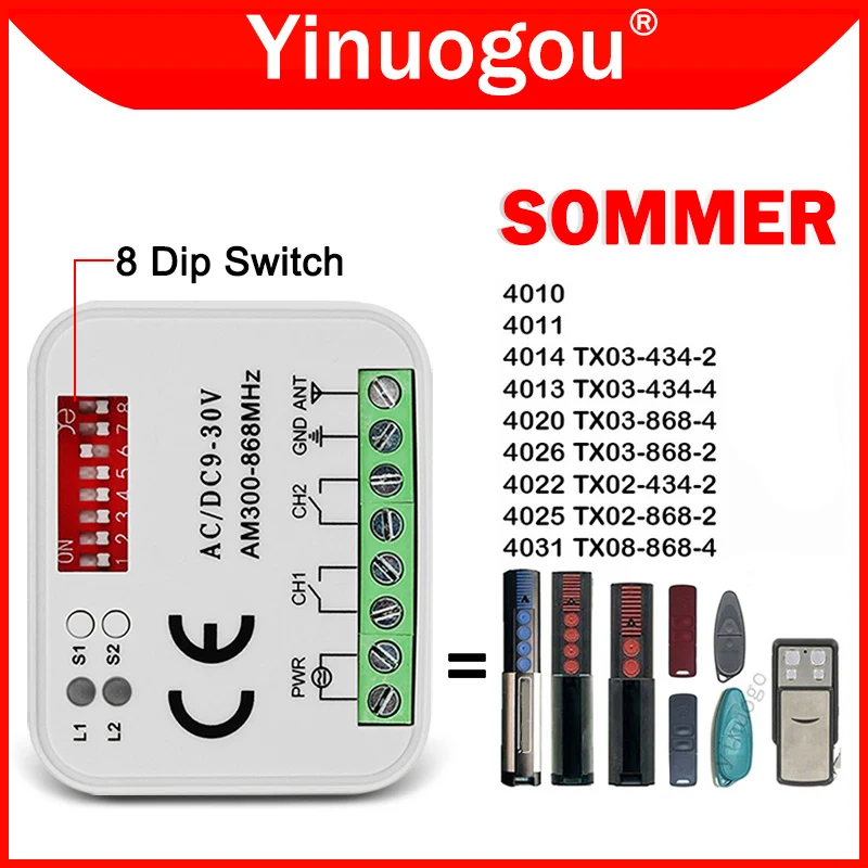 1) Select the correct brand for remote to be programmed by moving dip switches UP or DOWN. For 433,92Mhz Rolling Code remote controls, just move Dip-switch 5 UP. ( Contains manual)