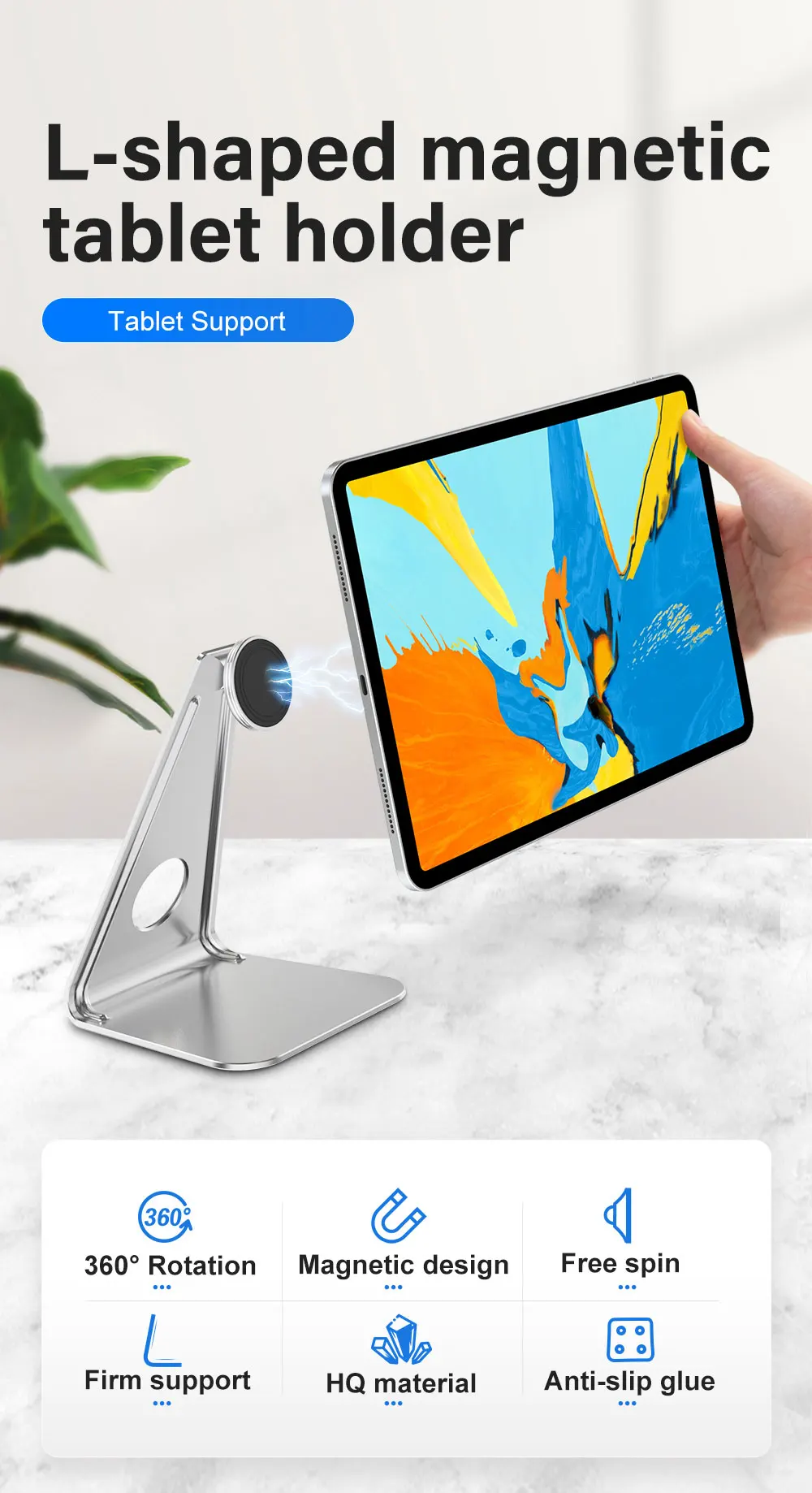SpecificationProduct Name:Metal Magnetic Tablet HolderProduct Wegiht: 215gMaterial:Aluminum alloyApply to: Universal Mobile Phone/TabletPackage List1 …