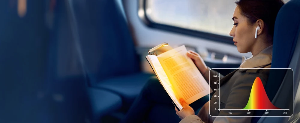 【Eye Care Amber Glow】1800K color temperature, the upgrade amber book light blocks 99.95% blue light, will not stimulate your photoreceptors or disrupt circadian rhythm while using it in bedroom. Effectively protects your eyes from being damaged by blue light when reading.