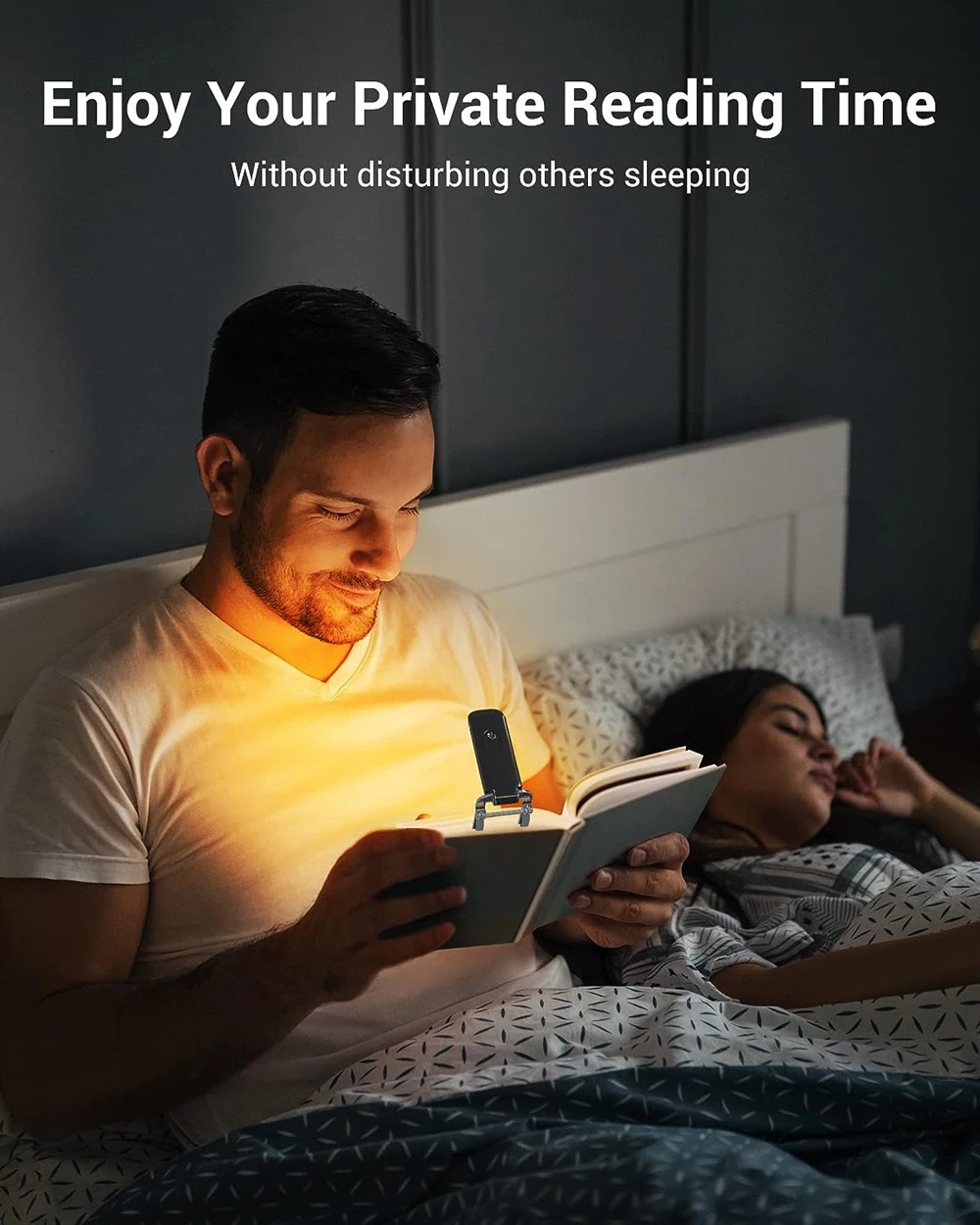 【Compact & Lightweight】Mini size design, 1.37 ounce, small and lightweight, ideal for clipping on a book when nighttime reading; can be completely folded flat and slim, double as a bookmark, portable for reading on airplane, train, or backseat of car when travelling.