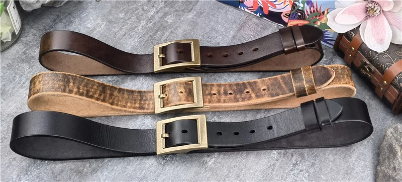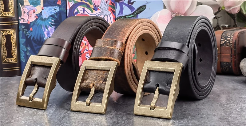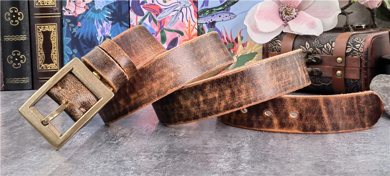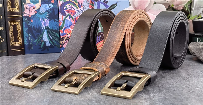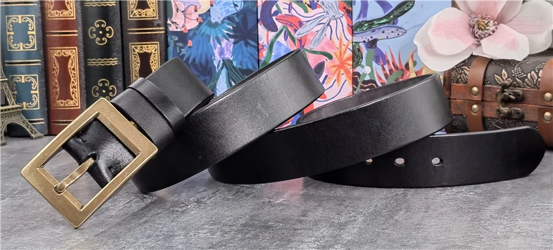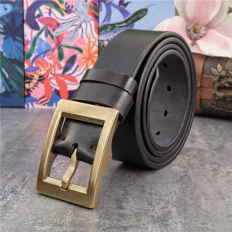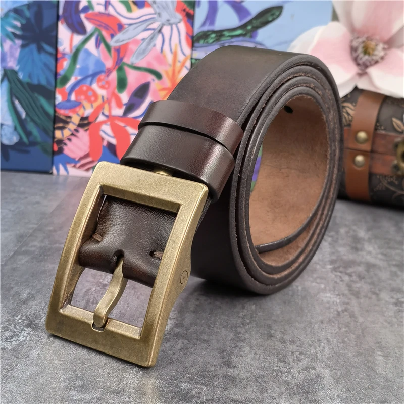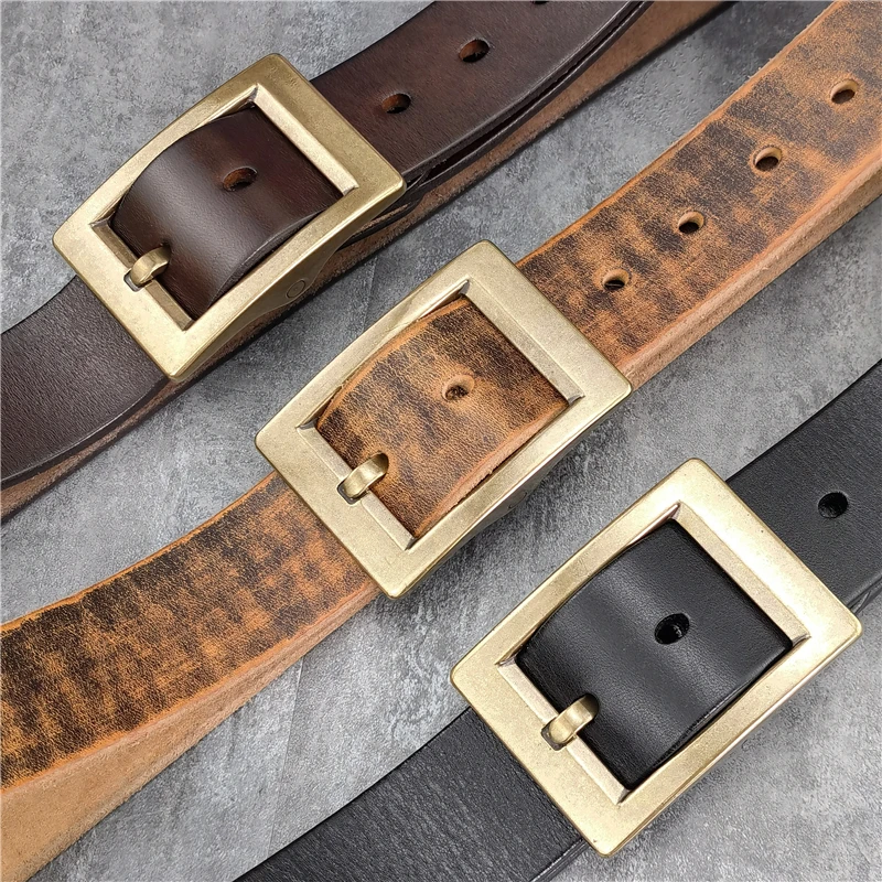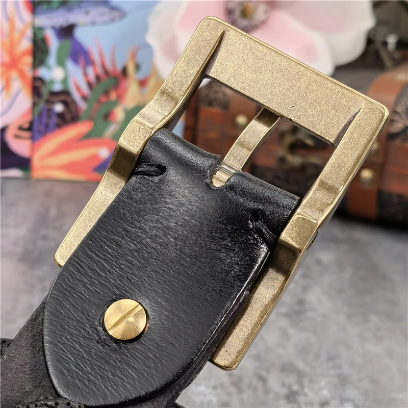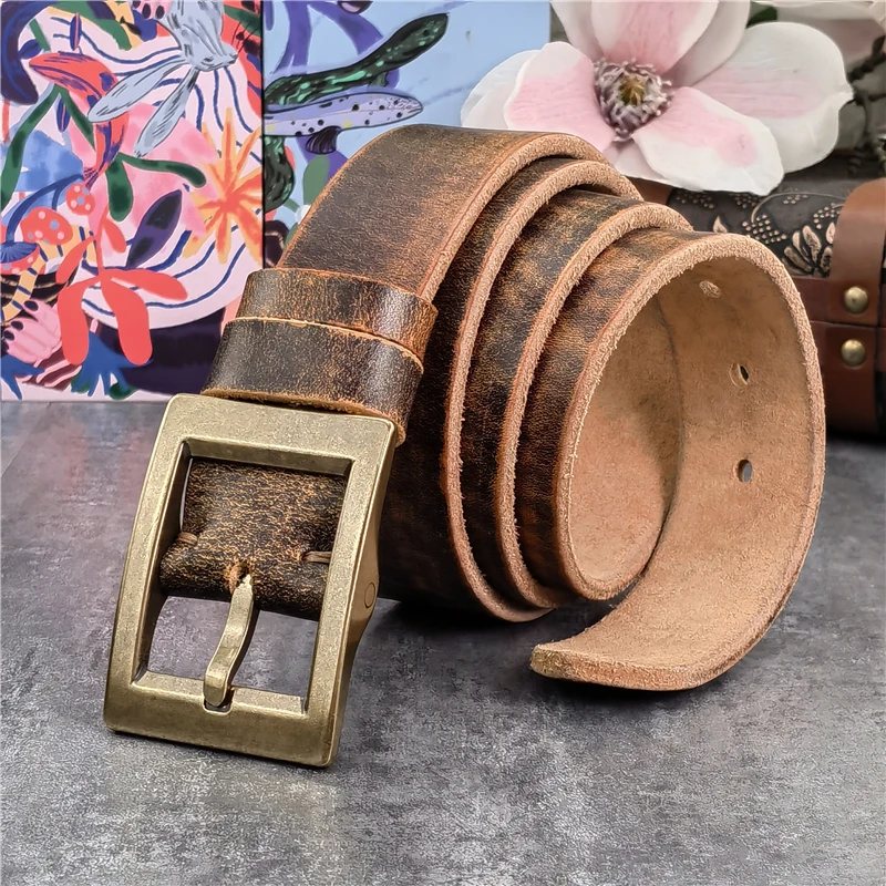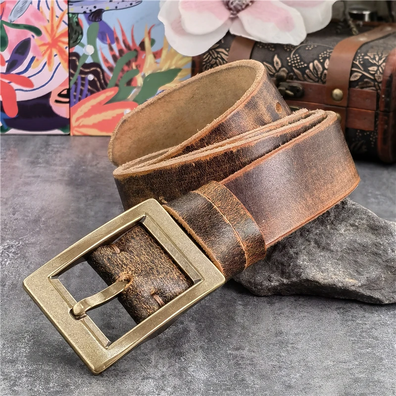 Vintage Heavy Solid Brass Belt Buckle Genuine Leather Belt Men
