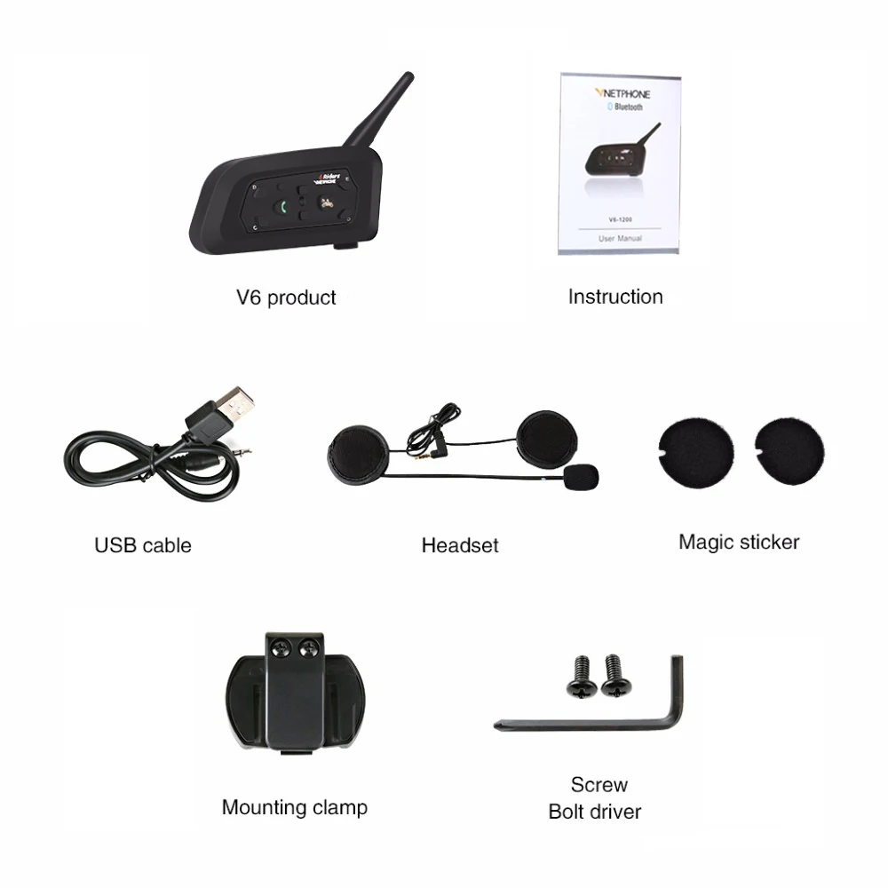 1200M Motorcycle Bluetooth Helmet Intercom for 6 riders BT Wireless Waterproof Interphone Headsets MP3Motorcycle Bluetooth Intercom, Eommunication Sys…