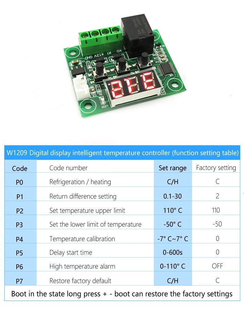 In the main menu interface P2,press the SET key to enter setup,press "+" "-" to set up the set temperature (maximum 110),press SET to return after the completion of a long press SET or 10 seconds without button motion controller automatically confirm completion.