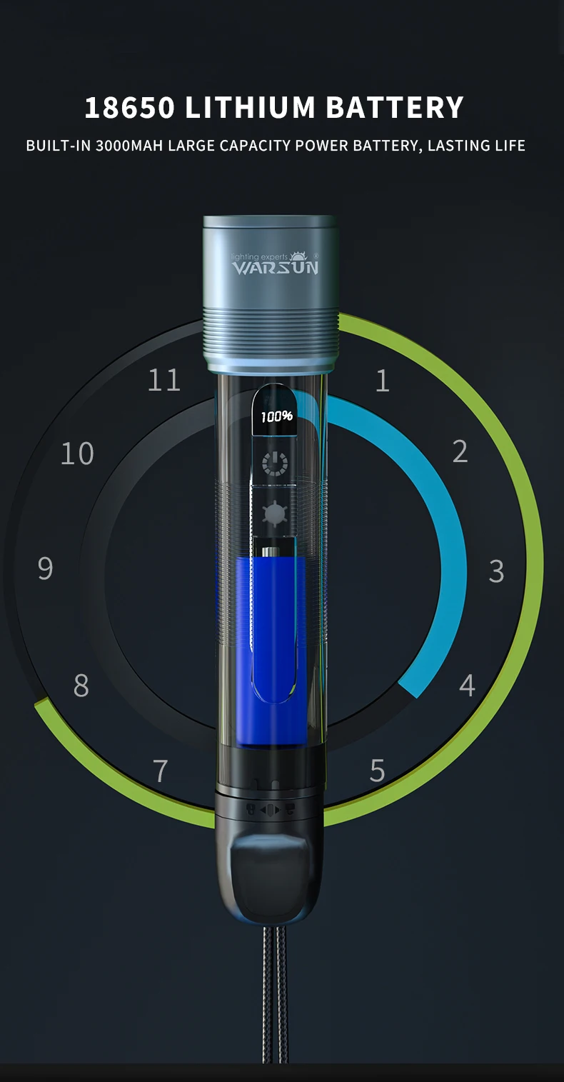 Model NO.: NB01Material: Aluminium alloy + ABSLight source: 1*P50+4*COBBrightness: 800LM+200LMBattery: 1*18650(1*2800Mah)Swith Modes: 9 Light ModesPr…