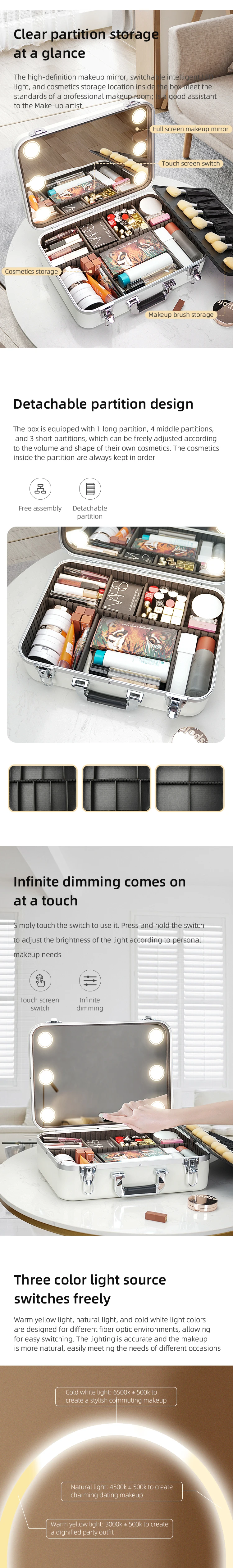 Quick view Choice LED Three Color Adjustable Makeup Mirror, Colors Brightness Adjustable Makeup Mirror with Lights,Travel Makeup Bag with LED Adju Free Shipping above $10 Free Shipping Now: $20.48 MSRP: Was: