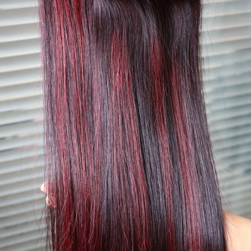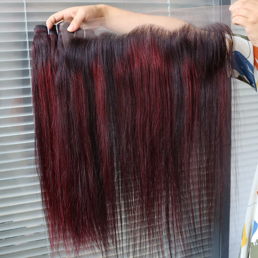 Wholesale Brazilian Virgin Hair Piano Color Highlight 1B Dark Red 99J Bundles with Frontal Closure Weave Weft for Black WomenAbout our hair1. 100% hum…