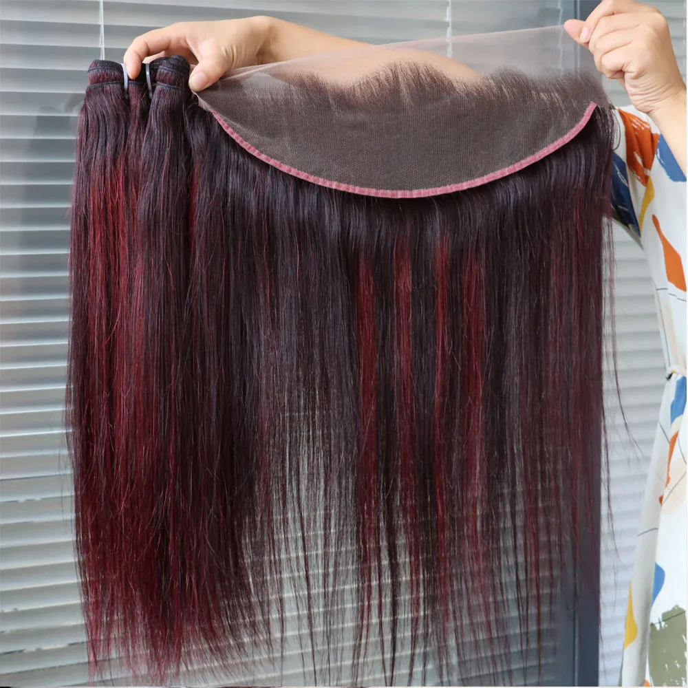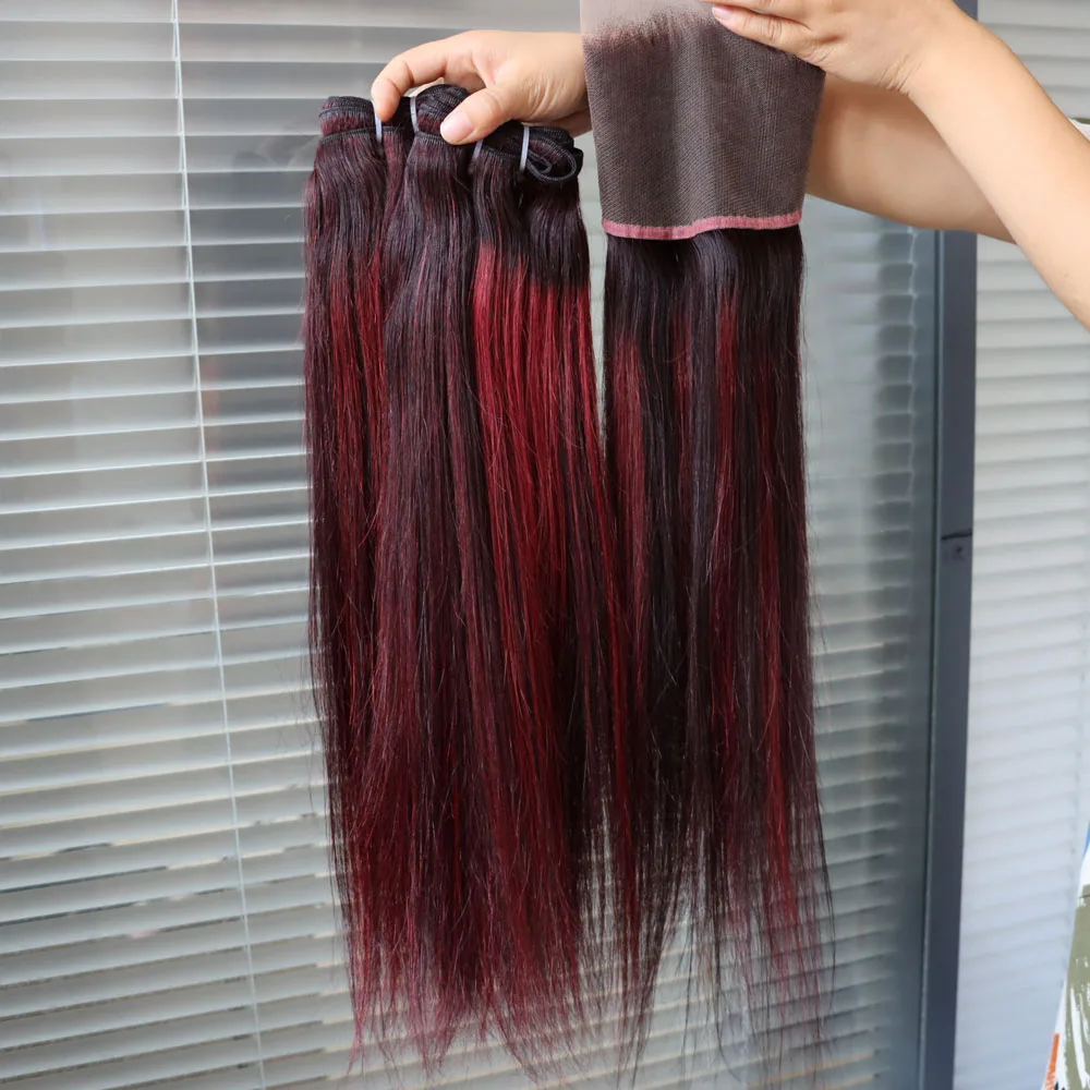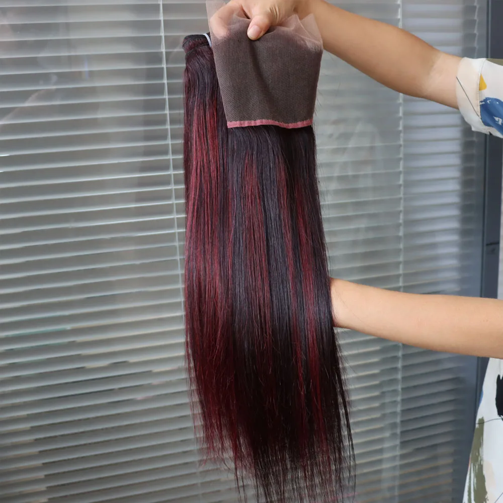 Wholesale Brazilian Virgin Hair Piano Color Highlight 1B Dark Red 99J Bundles with Frontal Closure Weave Weft for Black Women