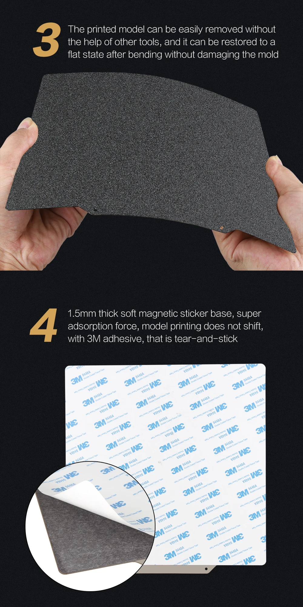 Easy to adhere to the printing surface, easy to remove the prints, flex slightly to pop your print right off.