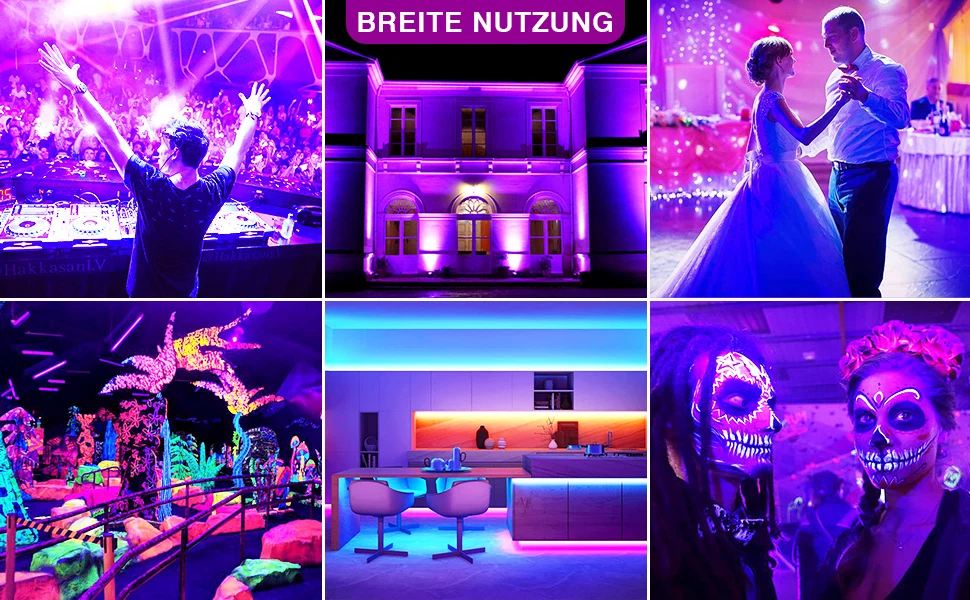 Blacklights create stunning atmospheres at gigs and parties, works great with UV bodypaints and fluorescents.