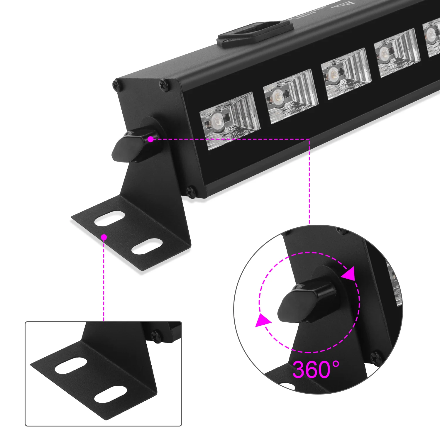Classic UV Black lights bar, aluminum alloy casing, lightweight and portable unit, and the best heat dispersing capability with built-in cooling fan.