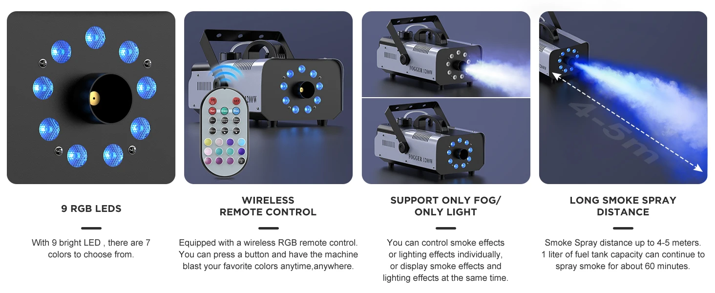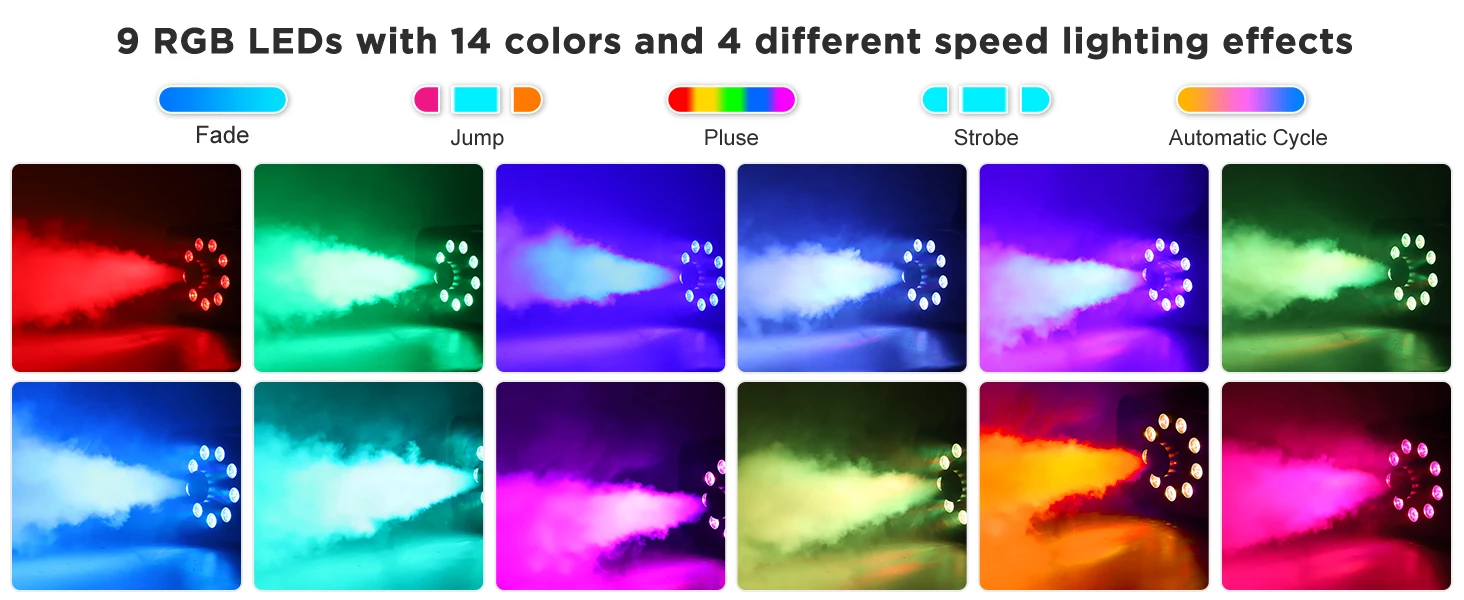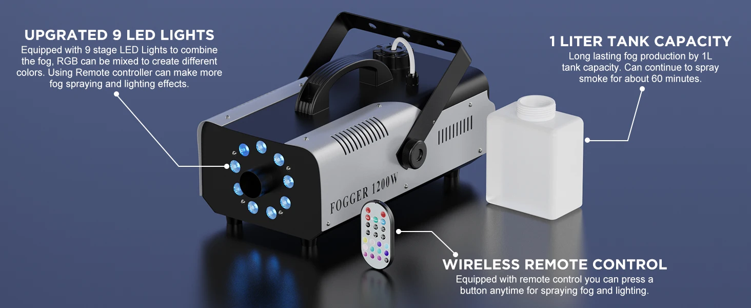 Yiflamefly Upgrade 1200W Smoke Machine With 9PCS RGB 3IN1 LED Colorful Spray Fogger Stage Equipment For DJ Disco Wedding BanquetSpecifications:Color: …