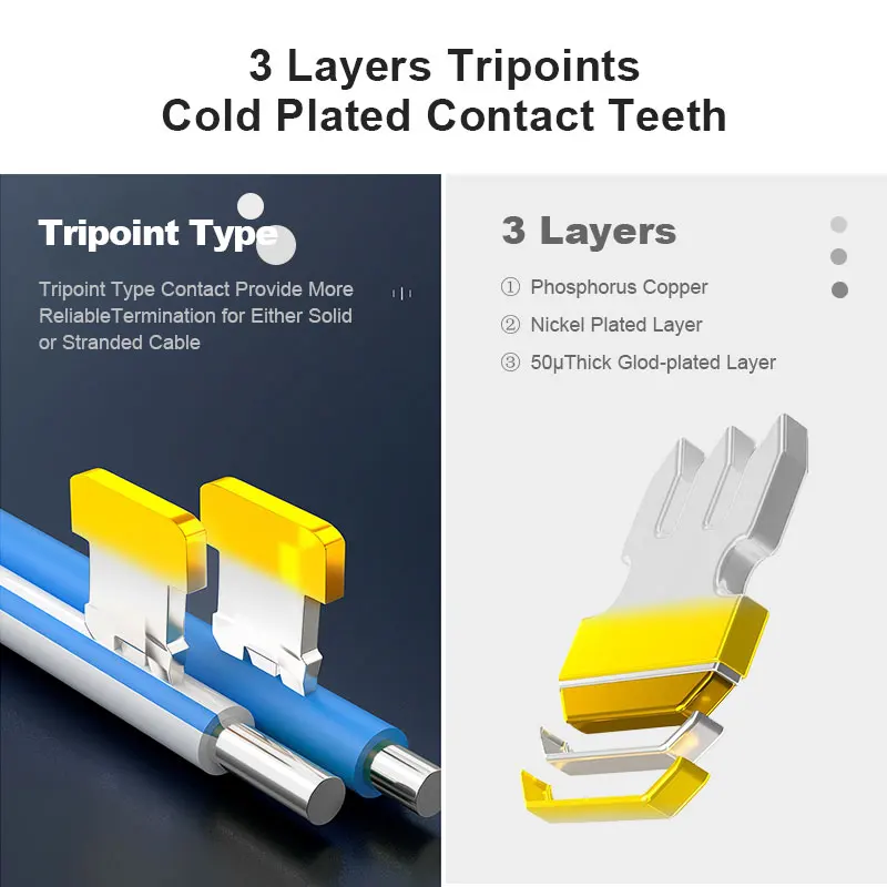 3 prong and gold plated enhances signal integrity and clarity by reducing the distance between wire twists and contacts.Gold-plated chips make the contact attached to the core closer and the data flow stable.